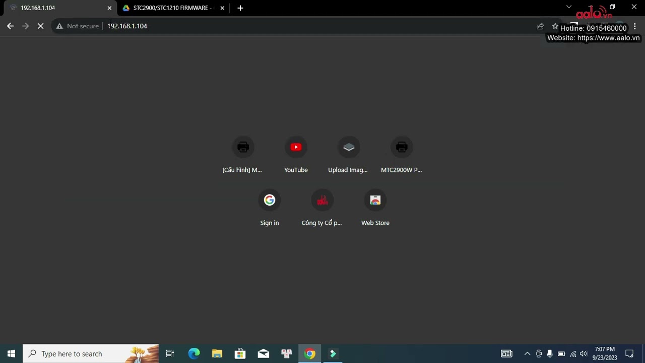 Hướng dẫn cách Up Date Firmware mới • 1 . Mở trình duyệt web truy cập địa chỉ IP 192.168.6.9 vào ứng dụng cấu hình. LOG IN TO THE SYSTEM • Đăng nhập tài khoản : admin - pass : mtc2900 • 2 . Chọn cấu hình UPDATE chọn tệp file bin ấn UPDATE đến khi hoàn tất • E – Hướng dẫn cách tắt tính năng Wfi của thiết bị • 1 . Mở trình duyệt web truy cập địa chỉ IP 192.168.6.9 vào ứng dụng cấu hình. LOG IN TO THE SYSTEM • Đăng nhập tài khoản : admin - pass : mtc2900 • 2 . Chọn cấu hình SECURITY Tại modun Wifi POWER MODE chọn Wifi off nhấn Apply Bản quyền thuộc về Công ty Cổ phần Công Nghệ Số aalo.vn Địa chỉ: Trụ sở chính : Địa chỉ: Số 3 ngách 35/5 đường Lê Đức Thọ,TDP số 5 Phú Mỹ, Phường Mỹ Đình 2, Quận Nam Từ Liêm, Hà Nội Văn phòng GD: Số 38D, Đường Dương Khuê, Phường Mai Dịch, Quận Cầu Giấy, TP Hà Nội Điện thoại: 0522849999 Hotline: 0915460000 Email: quantri@aalo.vn Website:aalo.vn